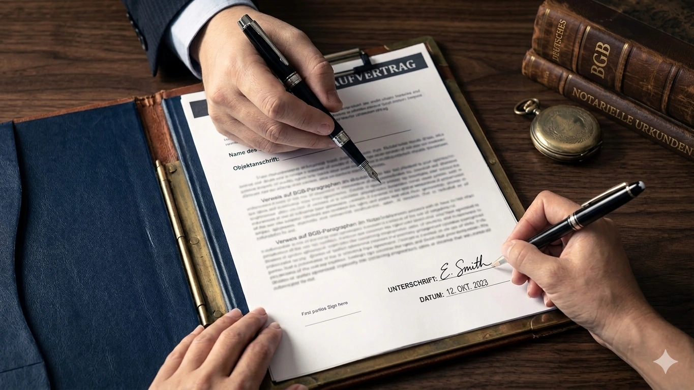 - Beurkundung: Er liest den Vertragstext im Beisein beider Parteien laut vor und stellt sicher, dass alle Klauseln verstanden wurden.